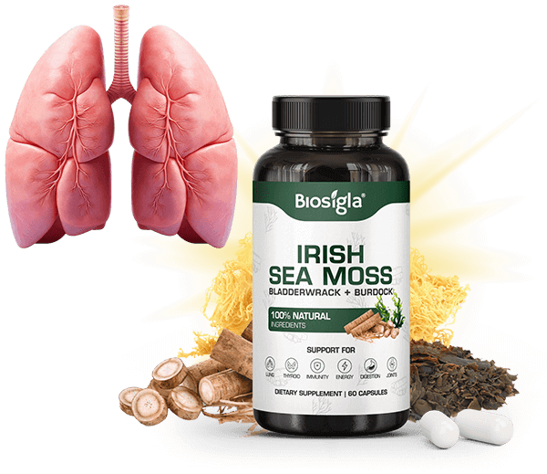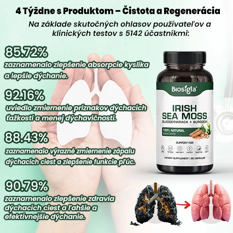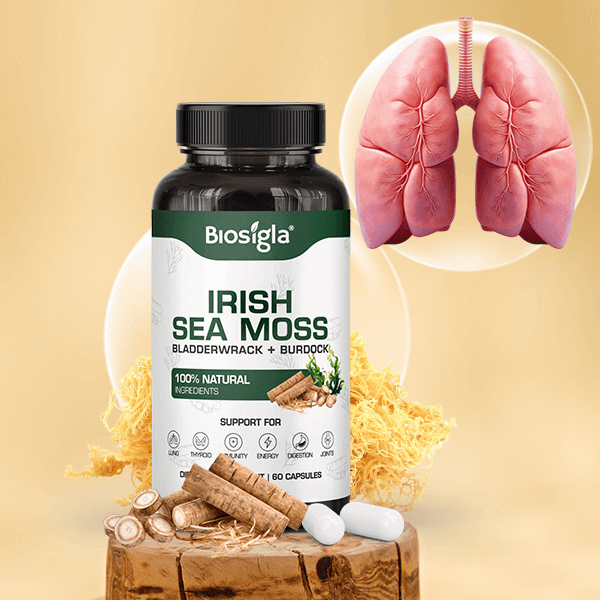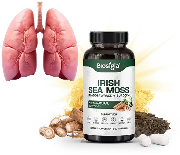 Biosigla - Irish Sea Moss je celosvetovo uznávaná pre svoje silné účinky na dýchanie, poskytuje prírodné riešenie na podporu zdravia pľúc, zlepšenie vstrebávania kyslíka a celkovej funkcie dýchania.